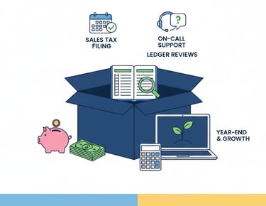 Whether it’s day-to-day bookkeeping, staying compliant at tax time, or turning raw numbers into real insights you can act on, we’ve got you covered.Think of us as your financial pit crew: while you’re out there building, selling, and growing, we’re in the background keeping everything running smoothly.